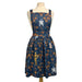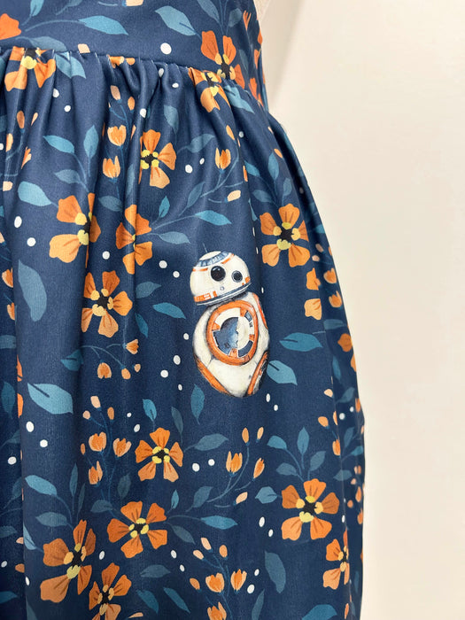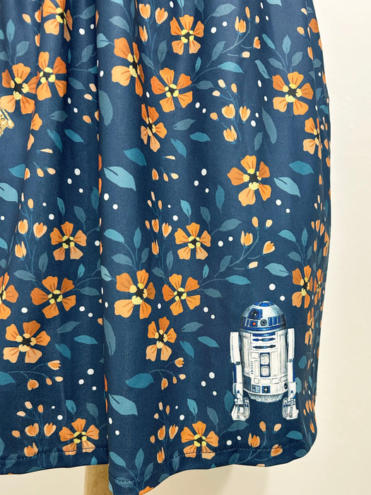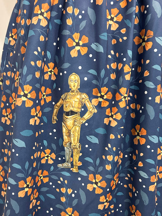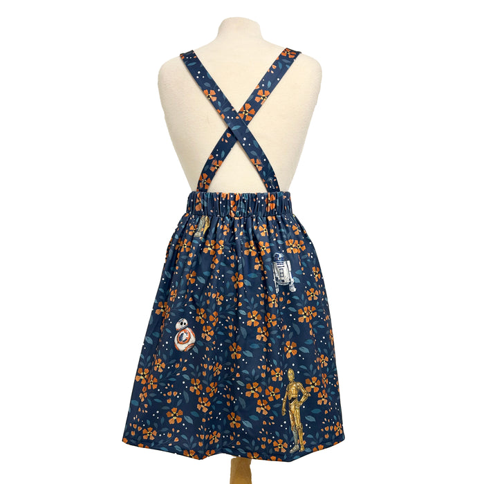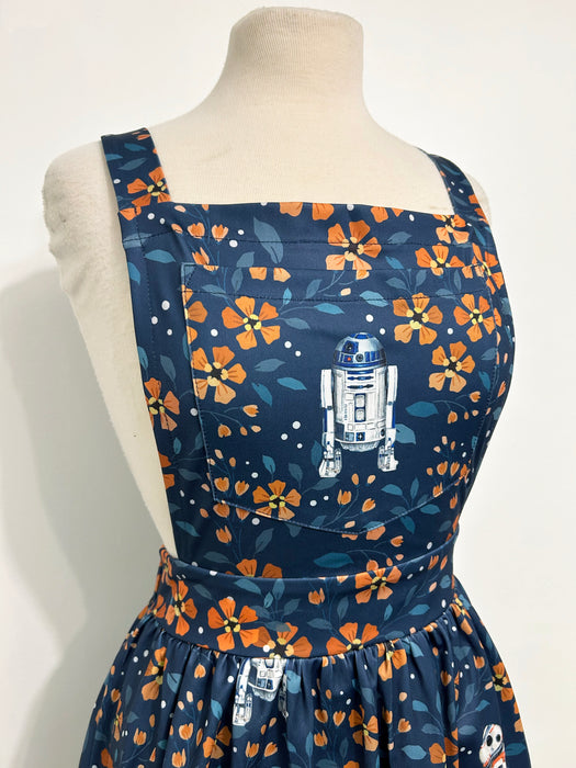 This one-of-a-kind Overall Dress with Pockets features my original artwork. Yes it has deep pockets and they are fantastic!! The fit is the same as my skirts except they are shorter in length - waist measurement is the most important to look at.